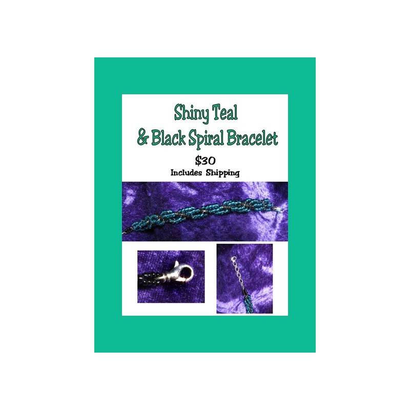Hand Beaded Shiny Teal & Black Spiral Bracelet