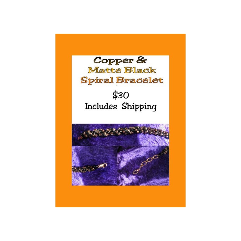 Hand Beaded Copper Matte & Black Spiral Bracelet