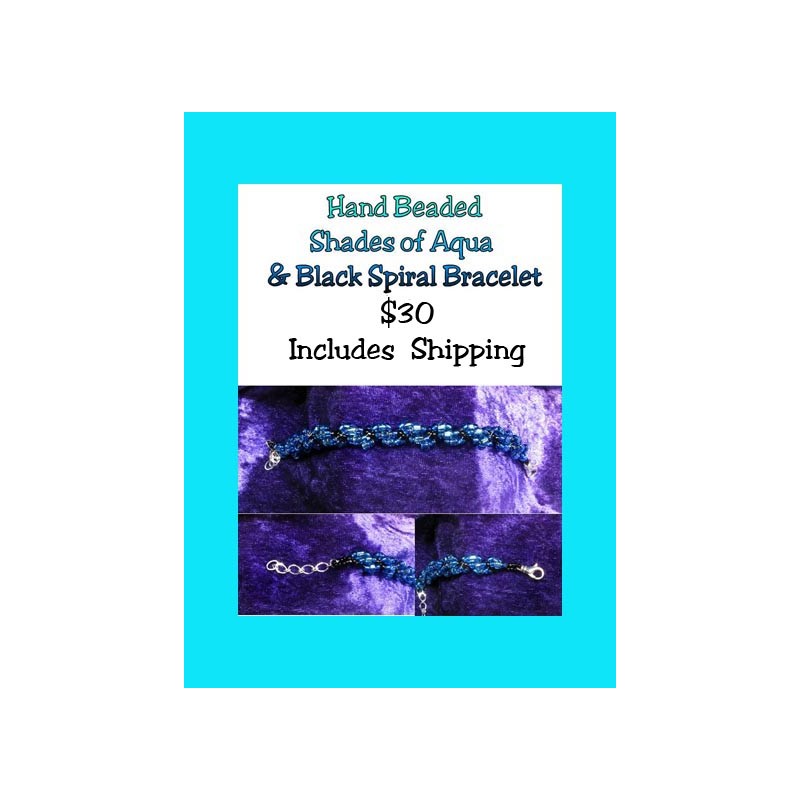 Hand Beaded Shades of Aqua & Black Spiral Bracelet